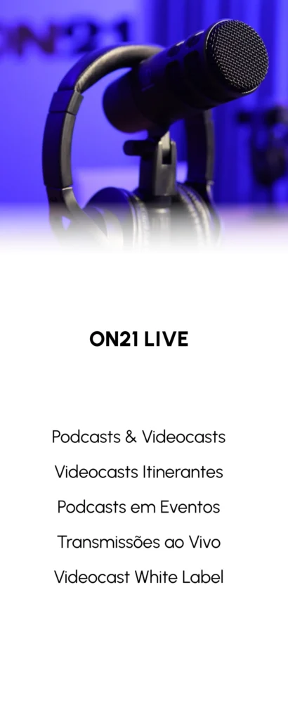 Com o ON21 Live, você poderá transmitir eventos, palestras, webinars e muito mais, tudo isso com a qualidade profissional que você espera da nossa produtora.